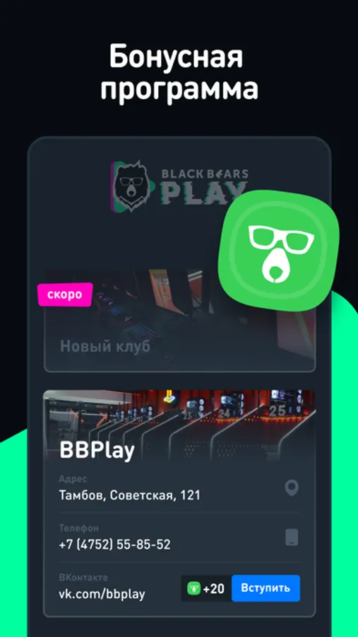 - Контролировать профиль в клубе, бонусные баллы и рейтинг.