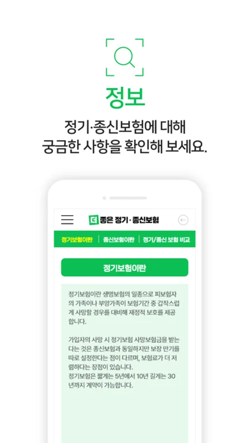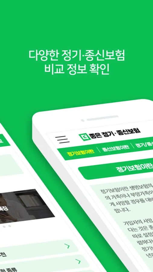 더 좋은 정기 종신보험 앱 하나로 보장내용부터 만기 해지 환급금까지 확인해보세요! 정기보험과 종신보험 비교 및 추천 외에도 다양하고 유용한 정보를 제공합니다.