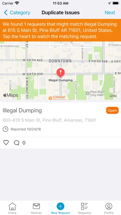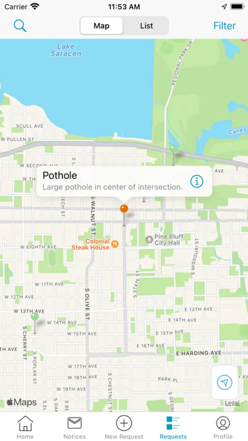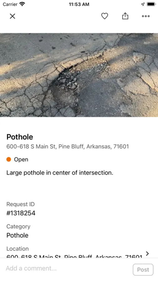Welcome to the Fix Pine Bluff Mobile App! With Fix Pine Bluff you’ll be able to easily and quickly submit requests for assistance with city issues, such as potholes, overgrown ditches, damaged or missing street signs, traffic signal problems, cracked sidewalks, and non-working streetlights, to name a few. With Fix Pine Bluff you will be notified when the problem is received and when it is resolved, increasing the City of Pine Bluff's accountability to its citizens.