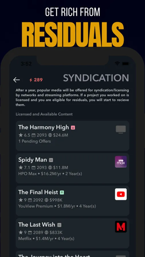 • Hire managers to invest in movies and land endorsement deals!