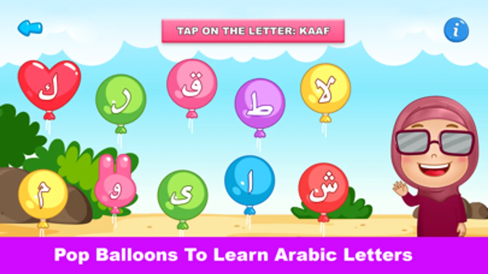 The app teaches the pronunciation and the shape of each letter in the Arabic alphabet, which lays the foundation for learning the Arabic language.