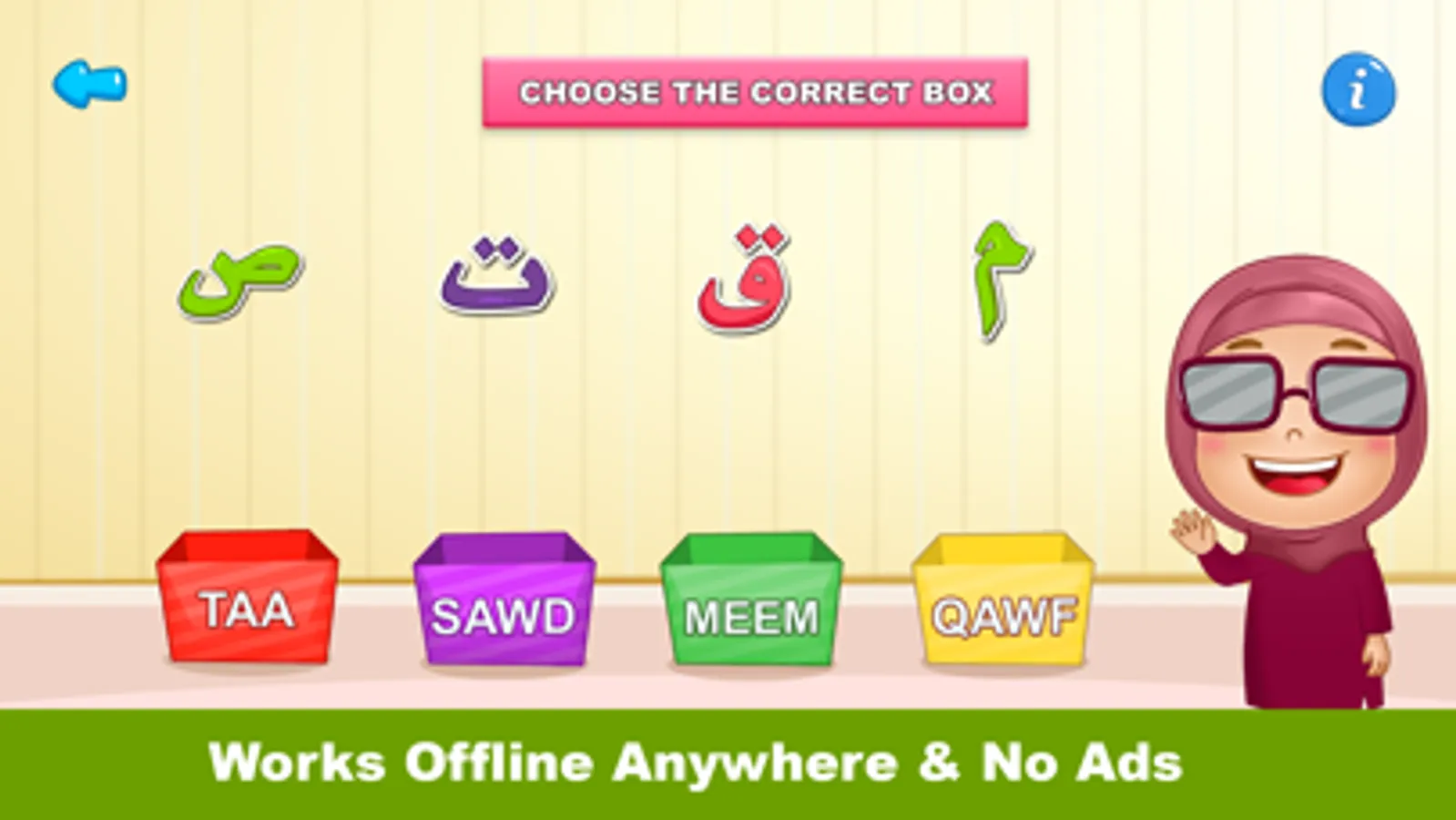 This Arabic alphabet app for kids is designed to help children learn the Arabic alphabet in a playful and engaging way. The app features colorful illustrations, engaging animations, and educational mini-games that make learning and recognizing Arabic letters exciting and memorable. Whether your child is just starting to learn the Arabic alphabet or needs a fun way to practice, this app is a must-have.