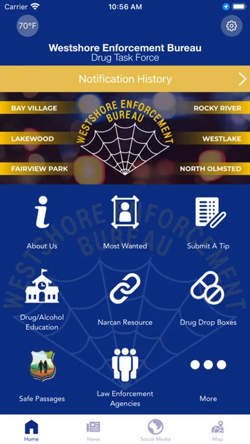 The Westshore Enforcement Bureau Drug Task Force (OH) mobile application is an interactive app developed to help improve communication with the residents of Bay Village, Fairview Park, Lakewood, North Olmsted, Rocky River and Westlake. The Westshore Enforcement Bureau Drug Task Force App allows residents to connect with the Bureau by submitting tips, utilizing drug and alcohol resources, provides substance abuse prevention strategies, substance abuse treatment referrals, and other interactive features, as well as providing the community with the latest news and information about the Drug Task Force.
