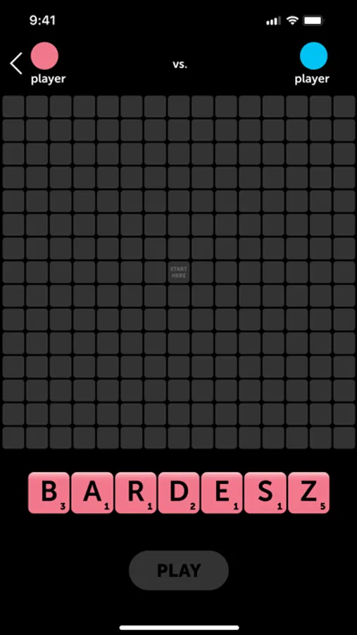 In this current version, players are randomly matched and user accounts are automatically created. Drag tiles onto the board to spell a word, then tap "PLAY".