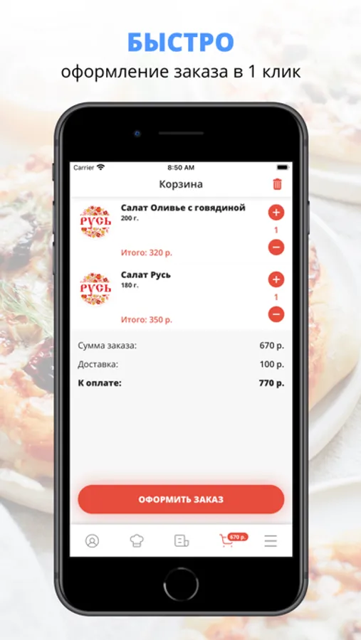 Скачивайте наше приложение, оформляйте заказ и наслаждайтесь любимой едой, где бы Вы ни были! Приятного аппетита!