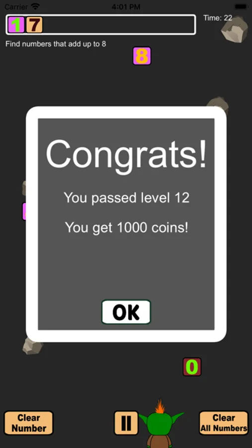 Looking for a fun way to learn basic math? Your Math Gremlin will have to avoid rocks, ghosts and more as it tries to find the numbers that add up to the correct amount before time runs out. As you advance, each level adds more challenges. Not ready for the challenges of the next level? Play previous levels to hone your skills until you are ready. Each level will have a similar, yet different, math problem to solve each time you play that level. It is free to play without any ads. You can use game coins earned by completing levels to extend game time, get extra lives or get gear for your Gremlin! Want game coins faster? They are also available to purchase or for free by watching ads. Play now for free!