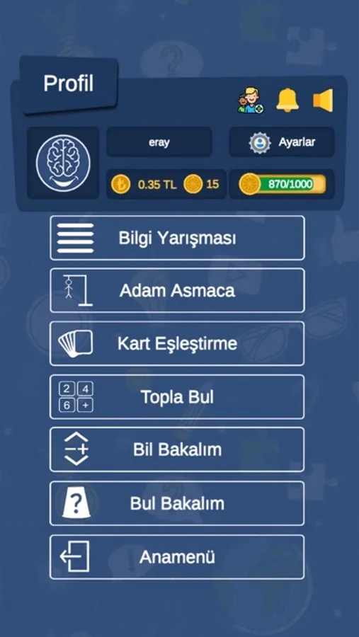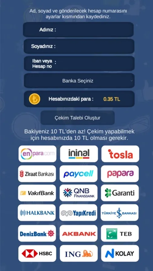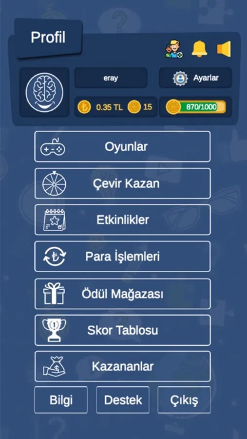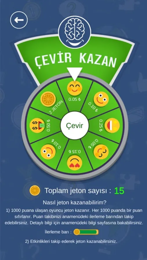 Para ödülü kazanma şansı sunan bilgi yarışması oyunumuza hoşgeldiniz. Oyun içinde farklı kategorilerde oyunlar bulunmaktadır. Gelişmiş tasarım ve yazılımıyla birlikte size güzel bir bilgi yarışması oyunu sunuyoruz. Şimdi sende aramıza katıl. Çarkı çevir ve ödülleri kazanma şansını yakala!