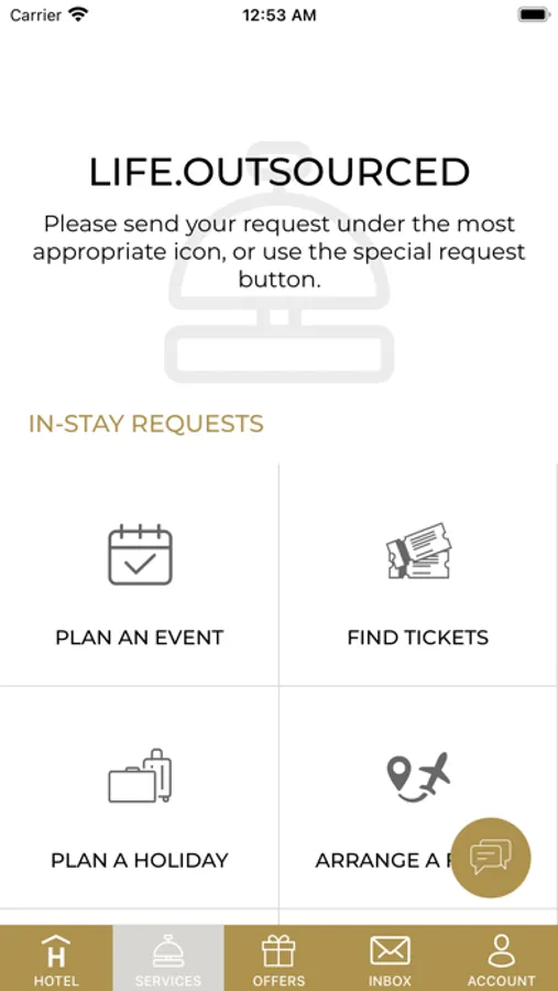 You can find detailed information about us on the mobile app and request services like Event or Holiday Planning, Finding a Ticket, Arranging a Flight, Booking a Car, Sending a Gift, Finding a Property, Booking a Restaurant, Concierge, and Special Requests.