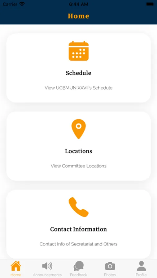 UCBMUN XXVII's App! Access the conference's schedule, map, and contact information of Secretariat. You'll also be able to see conference-wide announcements made by Secretariat members. If you create an account, you can send us feedback about the conference or the app specifically, as well as upload photos of your experience here!