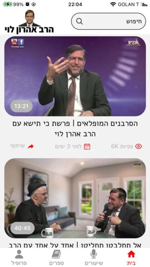 אפליקציה של הרב אהרון לוי, באפליקציה תוכלו לצפות בשיעורים של הרב, לראות מתי הרב מעביר שיעורים ועוד!