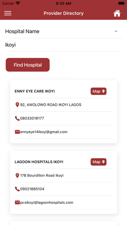 * Search our Provider directory in real-time and find hospitals closest to you with their addresses