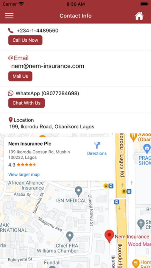 * One-click option to call our Customer Care or send us an E-mail. No need to remember any of our contact information anymore
