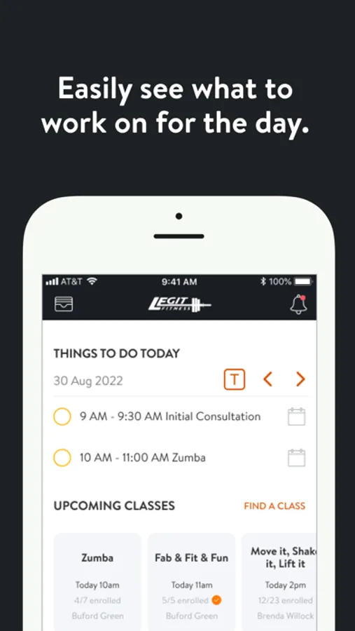 With the Legit Fit Mobile App, you can start tracking your workouts and meals, measuring results, and achieving your fitness goals, all with the help of your personal trainer.