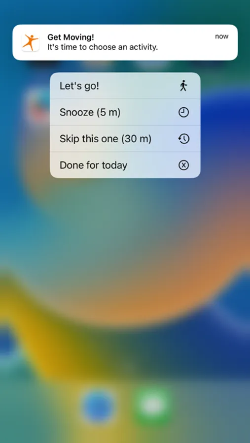 But Get Moving doesn't just prompt you to move, each reminder gives you two activities to choose between. These options might include taking a quick walk around your office building or doing push ups. By giving you choices, Get Moving helps keep your movement routine fresh and engaging, so you don't get bored or complacent.