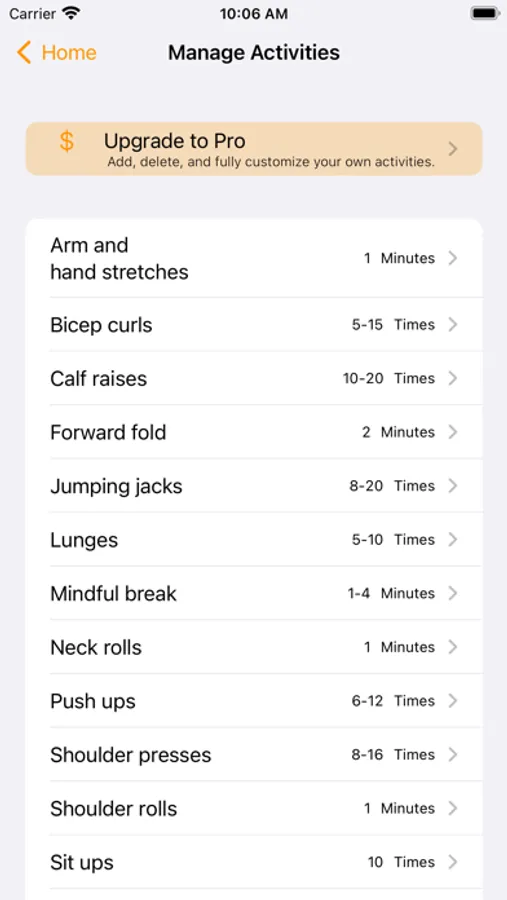 Upgrade to Pro and you can add new activities to your routine and also set up different routines, such one routine for when you are working from home and one for when you are in the office (and jumping jacks might not be appropriate!).
