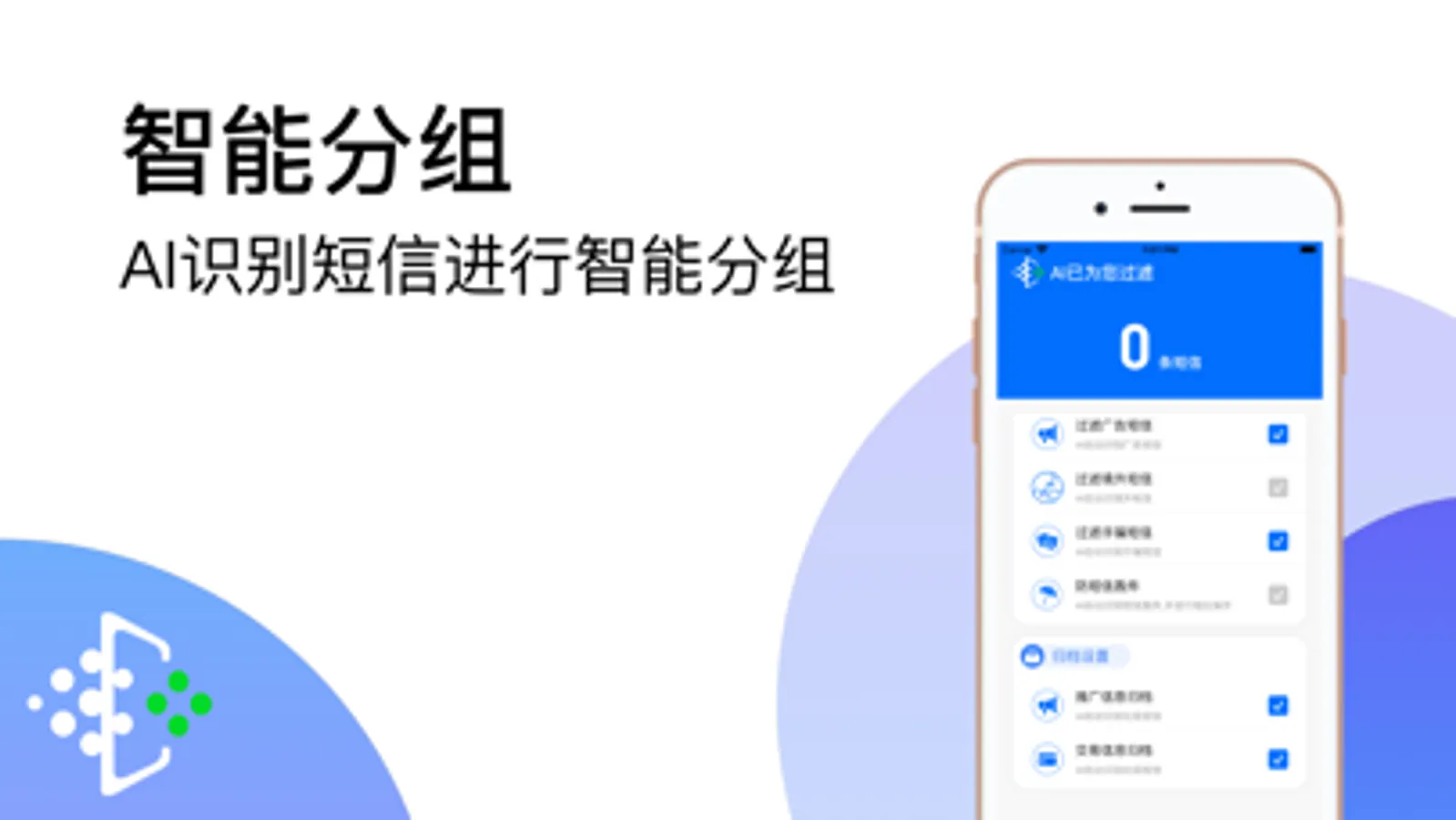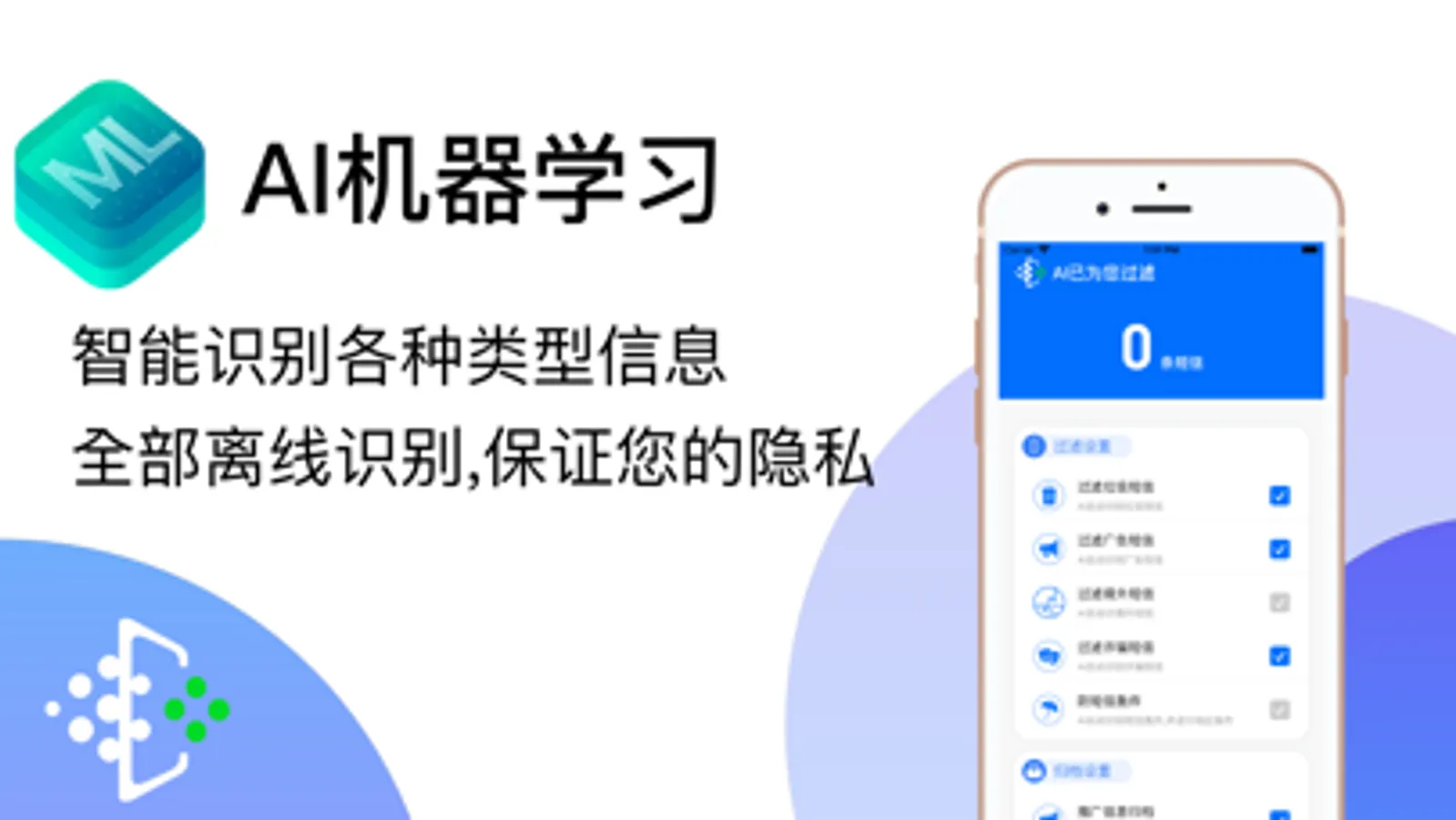 使用 Core ML 机器学习框架在设备端离线过滤垃圾短信,智能识别垃圾短信和短信类型分析,不需要手动配置任何过滤规则,安装即用。