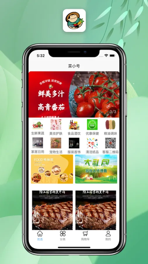 功能介绍:线上生鲜平台,足不出户,生鲜到家。