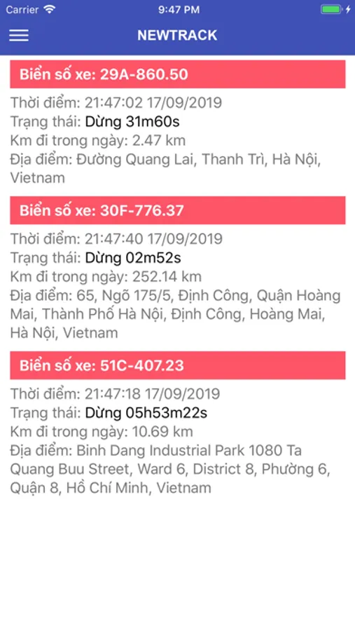 Ứng dụng giám sát hành trình xe NewTrack