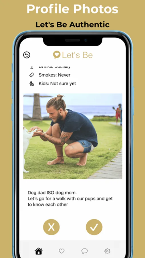 With Let's Be, both parties need to swipe right to connect. At that point, either person can initiate the conversation. Along with all members having a video introducing themselves, you can still add those fun photos showing your hobbies and interests.