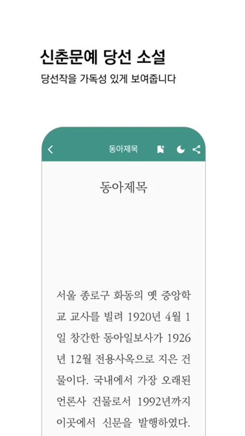 신춘문예 당선작을 간편하게 볼 수 있는 앱입니다.