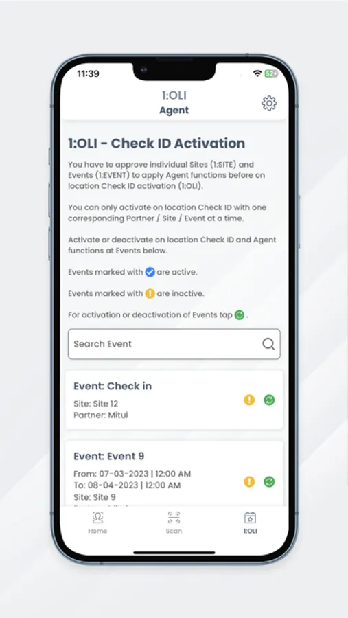 1OLI is an app to be used for on location identification of 1ID app users on behalf of 1ID Partners.