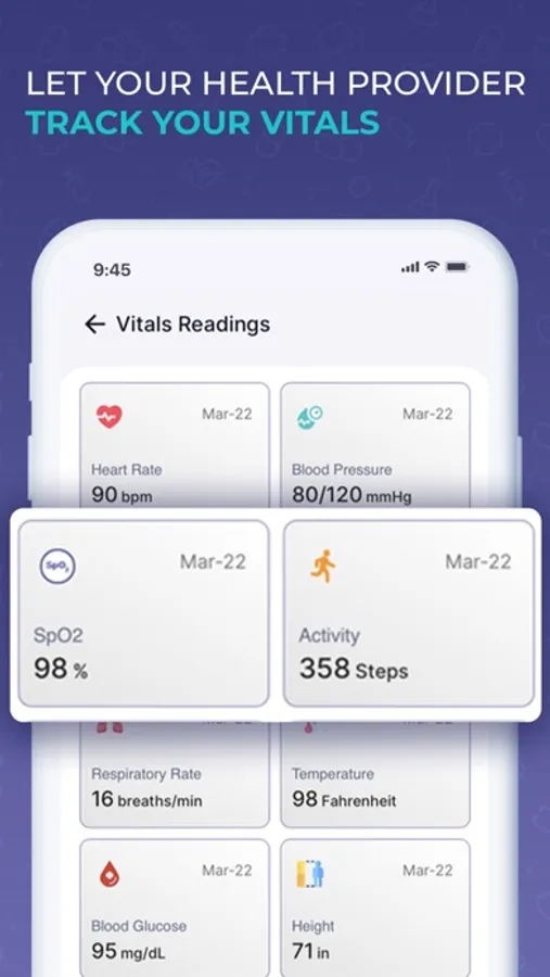 Cinch Health RPM App connects to Health app using Apple's HealthKit to fetch the vitals data so the provider can interact with the patient using the latest vitals information. This app reads data and does not write any data to Health app.