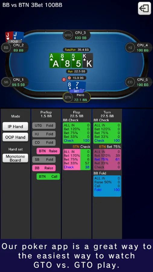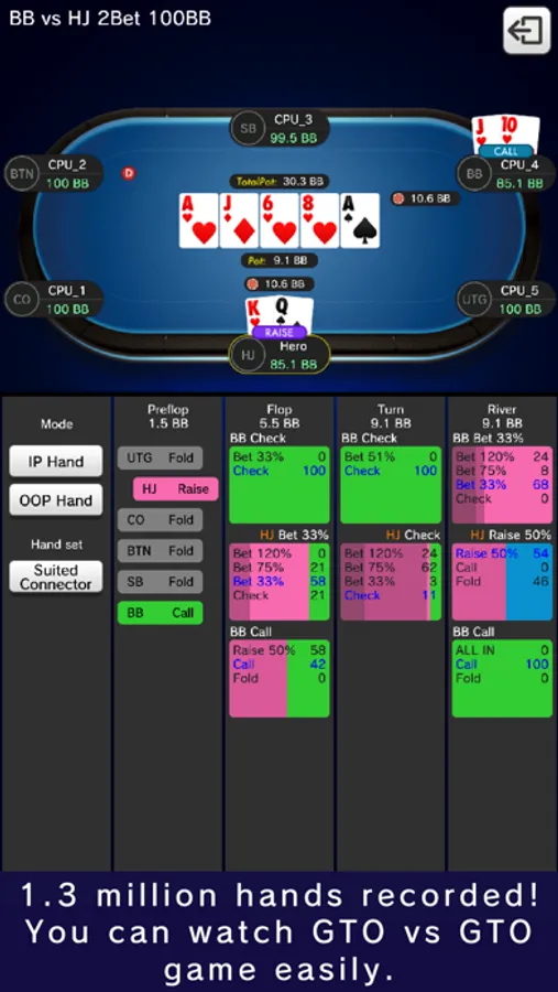 It is possible to watch GTO vs. GTO play in situations you are not comfortable with.