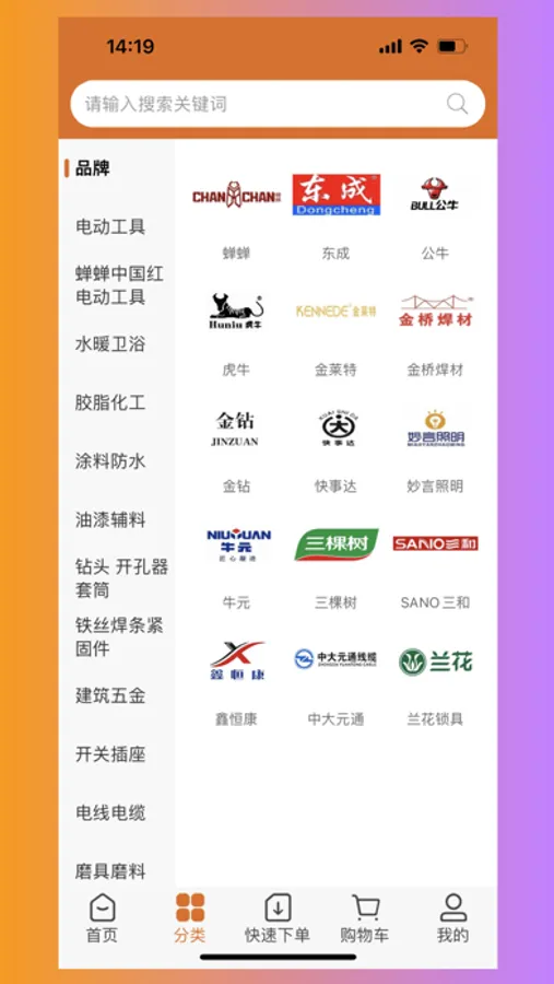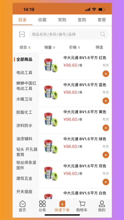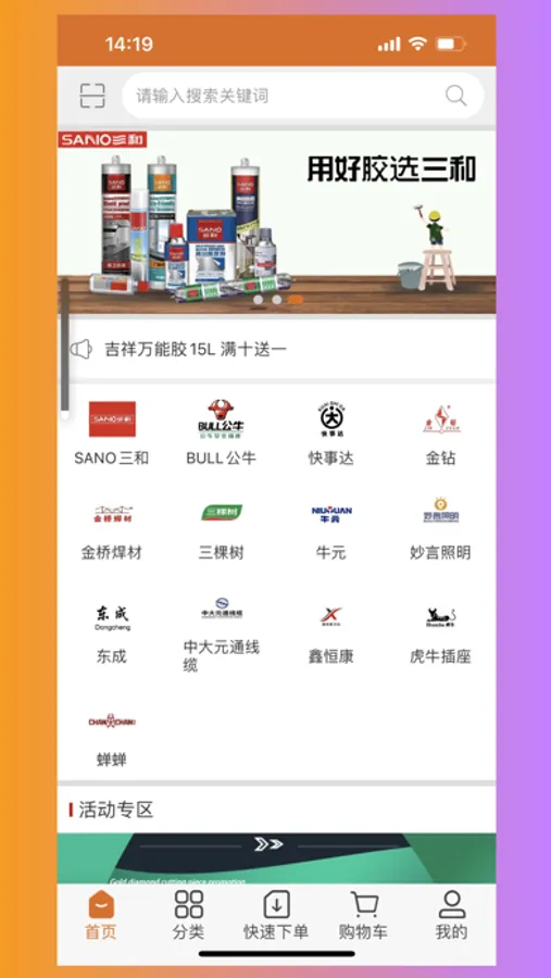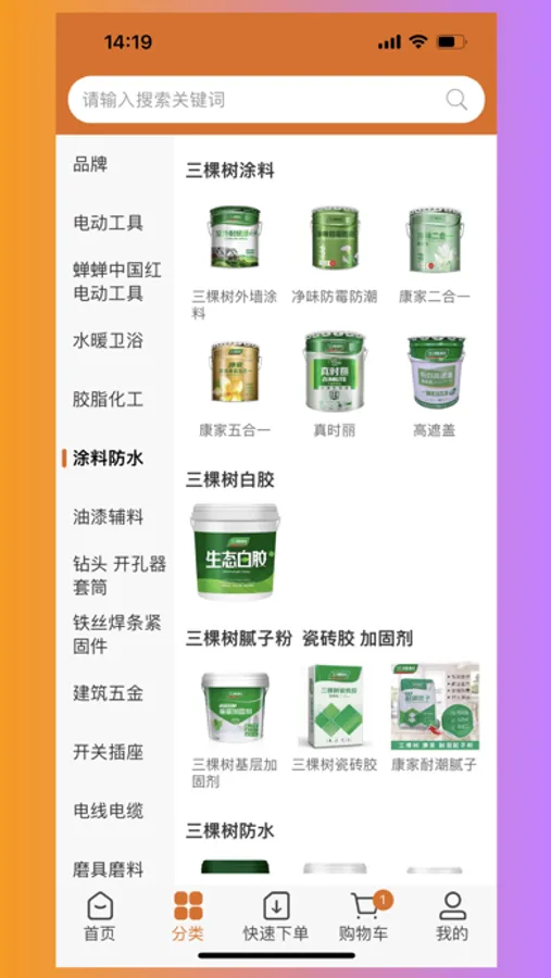惠聚材商城是一站式工业品、五金、建材、采购平台,集电动工具、水暖卫浴、胶脂化工、防水涂料、建筑五金,劳防用品、电线电缆、电器电料等各种品类商品于一体。公司自建仓库,自建配送车辆,用户下单每个产品都能次日及时到达用户手里。品牌分类、商品种类更全面,优惠促销一目了然,让用户下单更便捷。