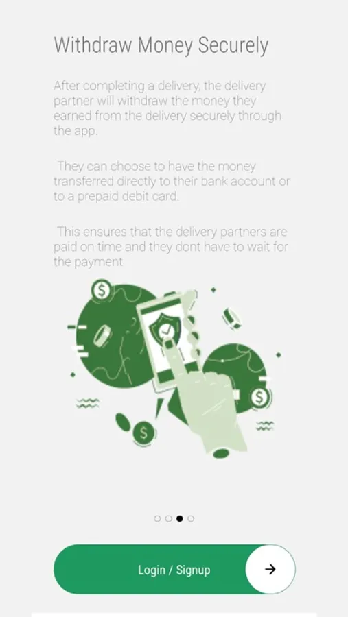 Once a delivery is complete, the delivery partner can withdraw their earnings securely through the app. They can choose to have the money transferred directly to their bank account or to a prepaid debit card. This ensures that the delivery partners are paid on time, and they don't have to wait for the payment.
