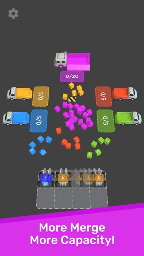 But here's the twist: the forklifts themselves can be merged, allowing you to create more powerful vehicles that can carry larger loads and move faster across the warehouse floor. Merge two forklifts of the same color to create a bigger and more powerful machine, but be careful not to merge different colored forklifts, or you'll lose a life!