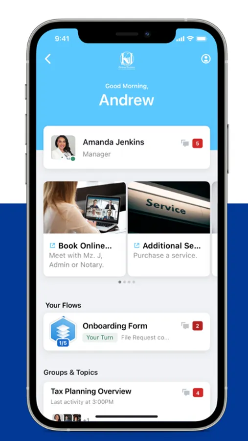 Connect with our team and view your wealth protection plan on our secure KJ Private Investments app. With everything you need all in one place, use our app to send private messages, share documents, e-sign files, and more for a streamlined and secure trustee experience.