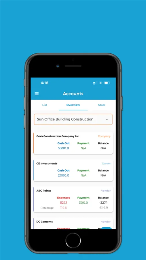 Simple user interface perfectly designed for construction professionals and owners.