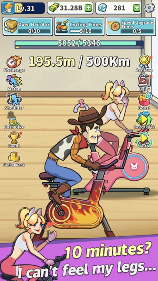 Click on the spinning bike to complete the ride to earn cash to improve the character's speed, stamina, sprint and other abilities;