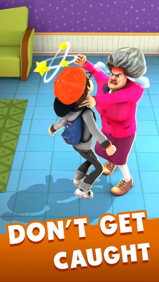Miss T is patrolling around her home, doing different chores. Just secretly pull pranks on her and hide somewhere, so she doesn't catch you while setting up the pranks. Once she catches you, she will kick you out of her house. So, set traps anonymously. Keep yourself and your pranks out of her sight.