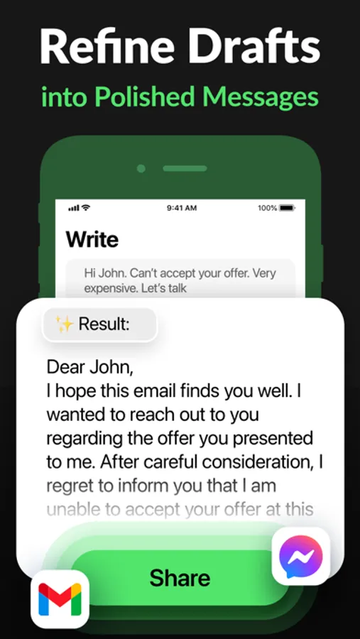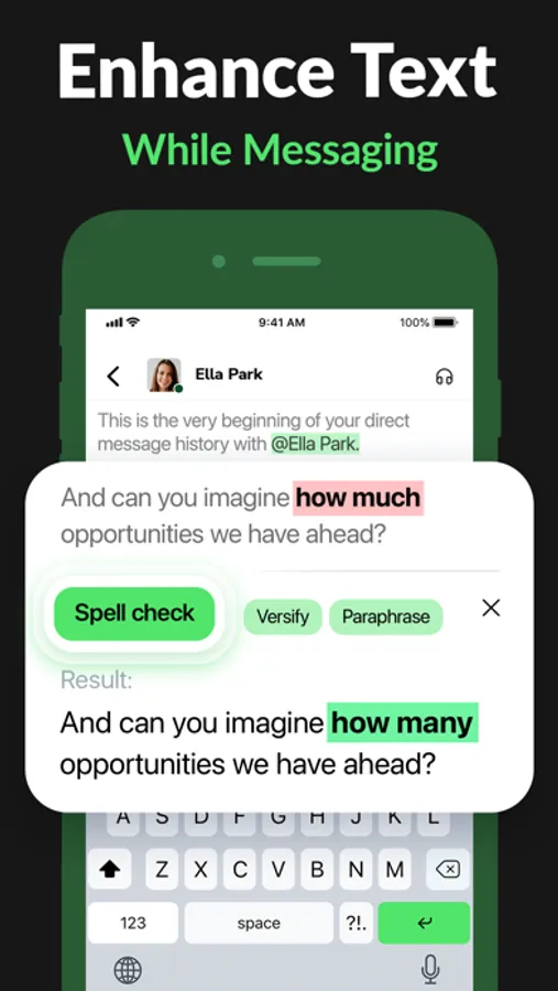 We know how frustrating it can be to send a message and later realize that it's full of typos and grammar mistakes. But with our AI-powered keyboard, you can breathe a sigh of relief, as your messages are double-checked for accuracy. Say goodbye to embarrassing autocorrect fails and awkward misspellings.