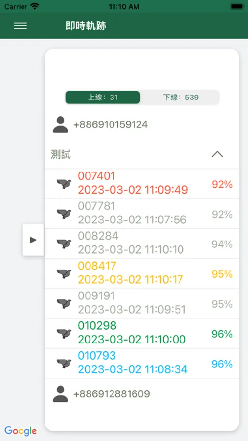 內建5G通訊技術+全球衛星即時定位系統,可在手機、電腦端即時追蹤愛鴿位置。