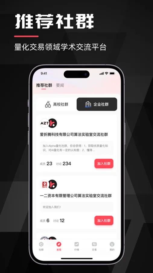 2、想和头部量化金融工作室交流专业问题,您可以加入企业交流社群,企业交流社群汇聚了金额行业专家学者的知识心得。