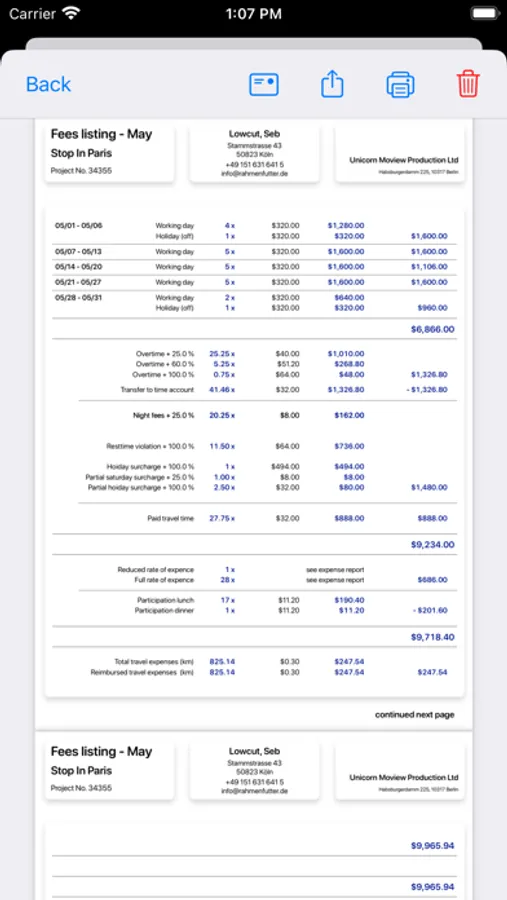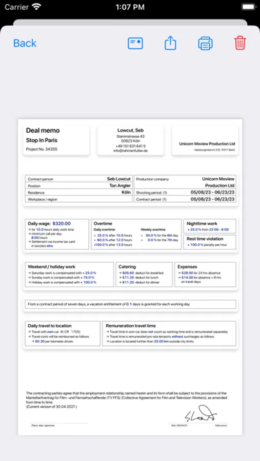 Customizable Settings for International Filmmaking: Dreharbeit offers extensive customization options to adapt to almost any conditions in the international film business. Tailor the app to suit your specific requirements, ensuring accurate and efficient invoicing.