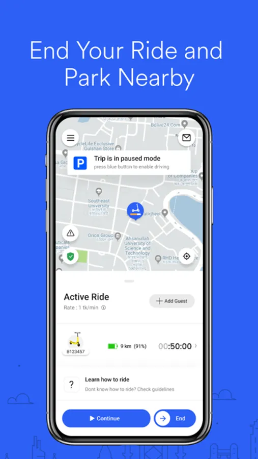 Mit den TAM-Scootern, kannst du unsere Stadt erkunden und auf intelligente, sichere und nachhaltige Weise überall hingelangen. Öffne einfach die App und miete dir ein Fahrzeug in nur wenigen Schritten.