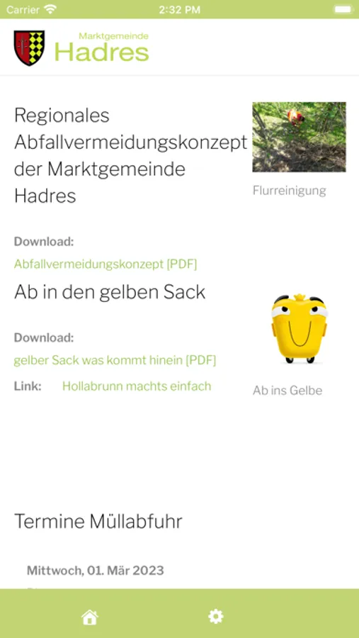 Amtstafel, Veranstaltungskalender, Müllabfuhrtermine und wichtige Benachrichtungen.