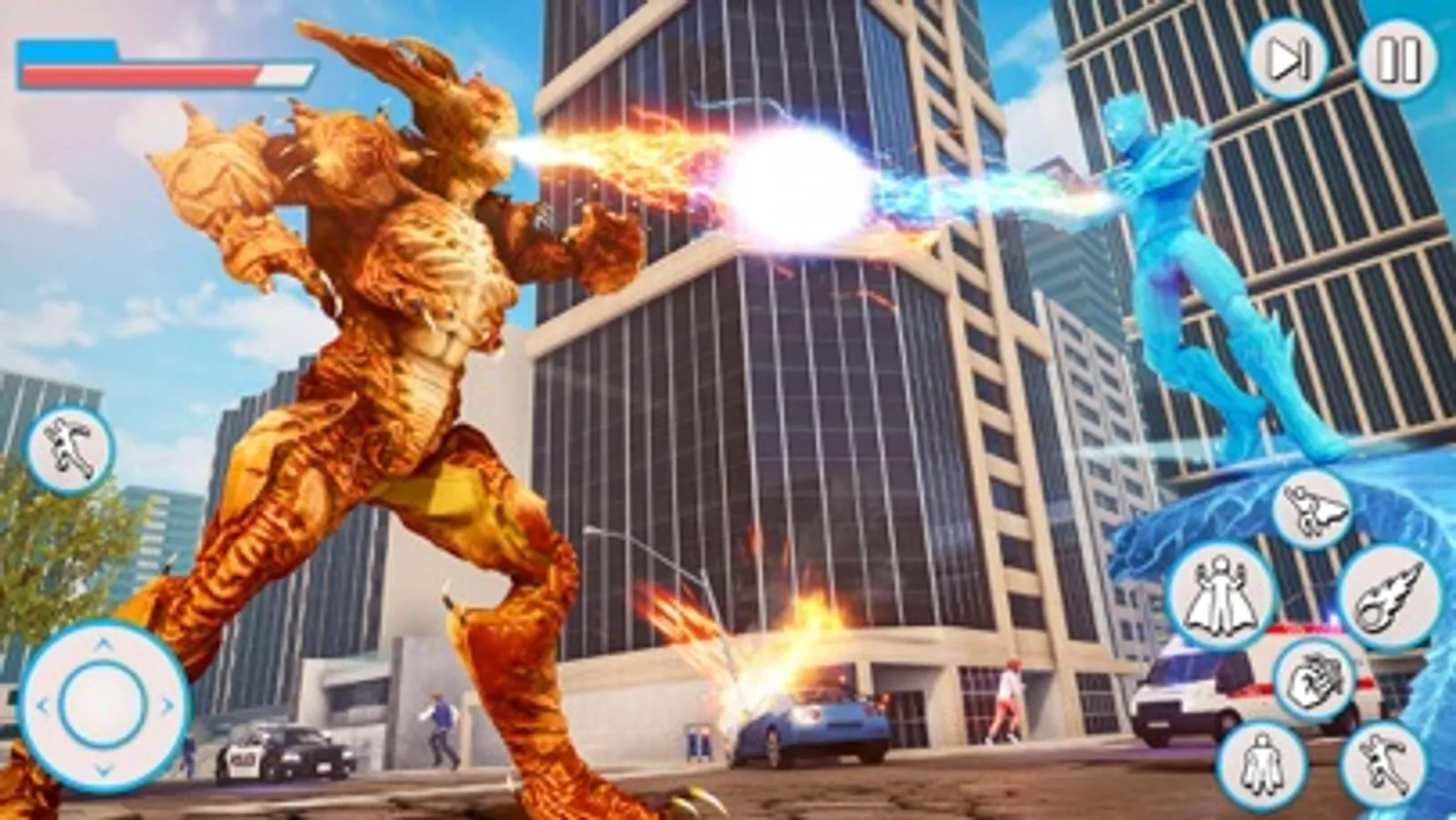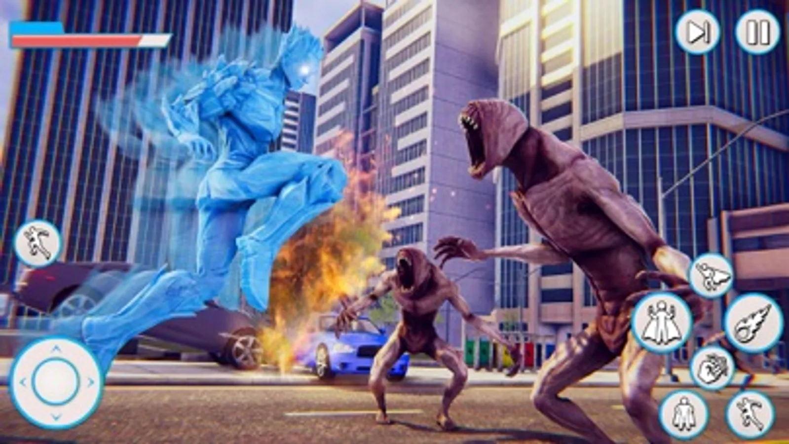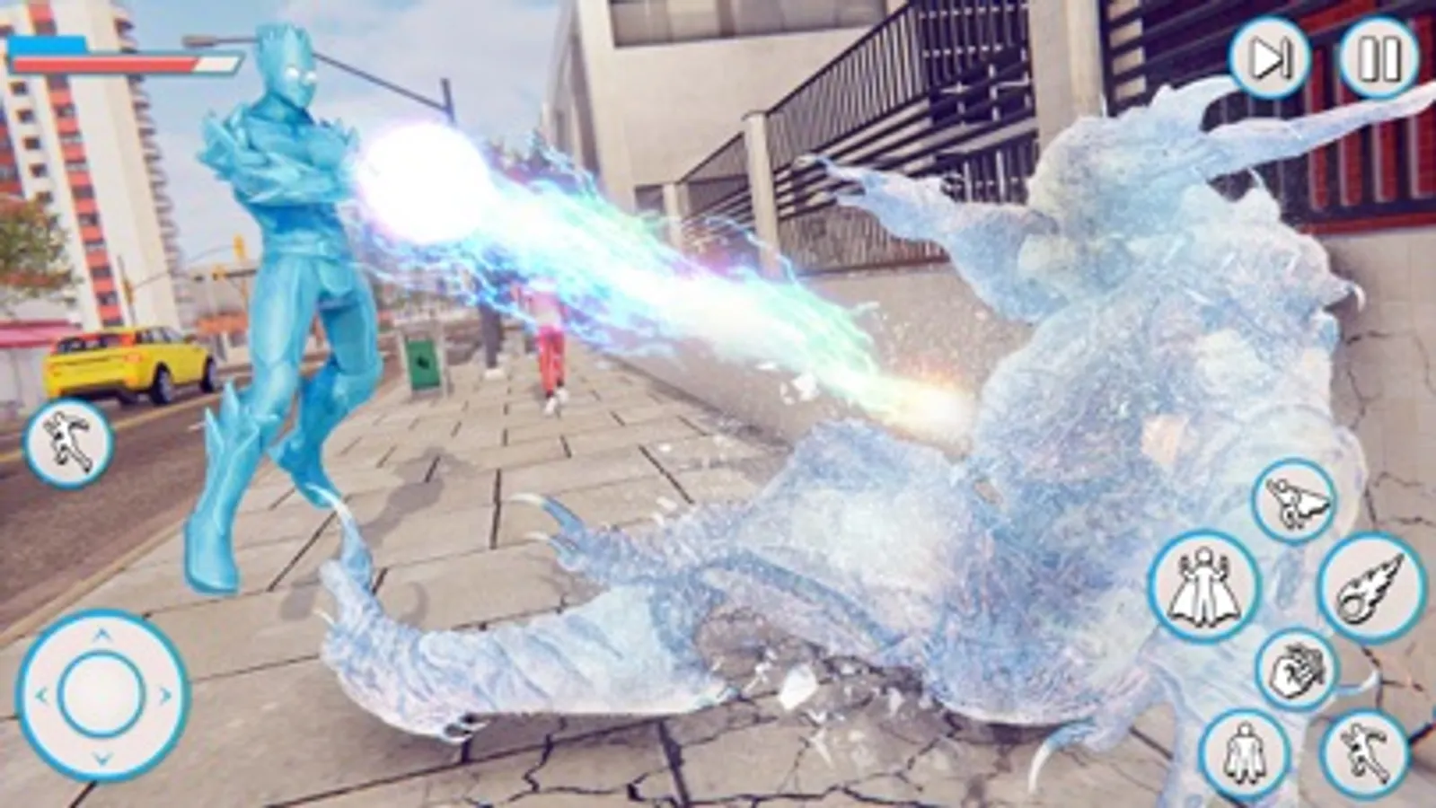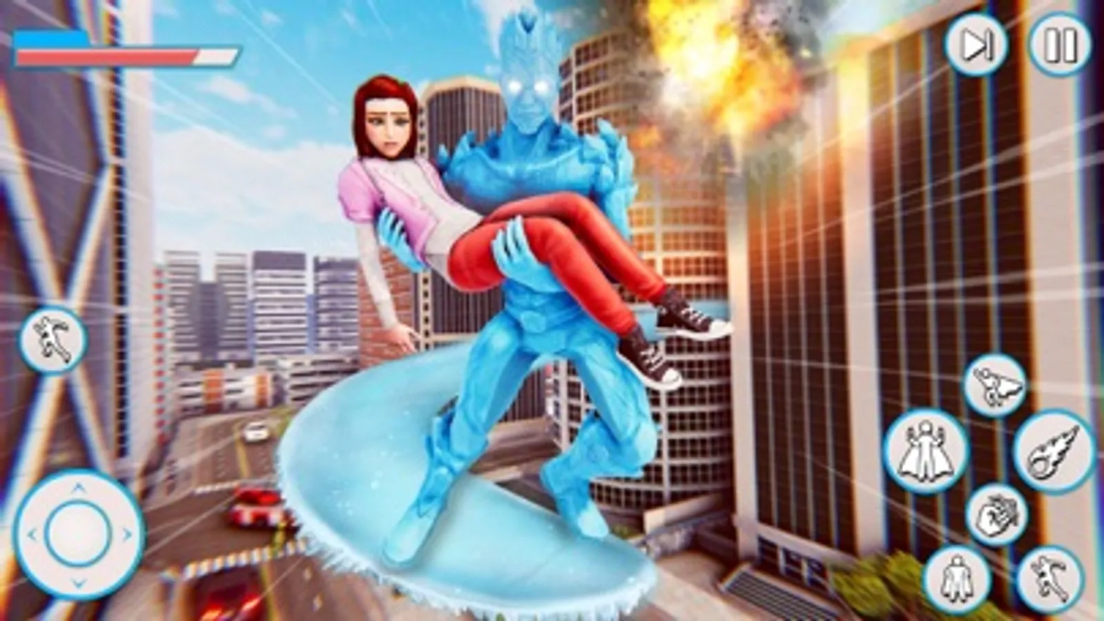 Fight with space alien gangs and save the lives of the citizens. The ice hero to do multiple stunning and thrilling action-packed missions. Save the Vegas city from the big destruction and kill the alien force with the help of power rangers. Suddenly, a famous building in the city fire flares up. Some children that are trapped now the ice hero take control and rescue them in a safe place. After some time, alien spaceships enter the earth and start destruction. Now the ice hero stops them and fights to save the city. The boos of the alien catch beautiful girls from a city now the ice hero will save within limited time duration. You will enjoy multiple missions in this action game. Lots of fights between the two powers of the world. The ice hero fights with the alien boss to save the people life and city from a big destruction. The hero is going somewhere and saw something wired and get power from the mini blast to save citizens.