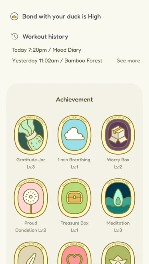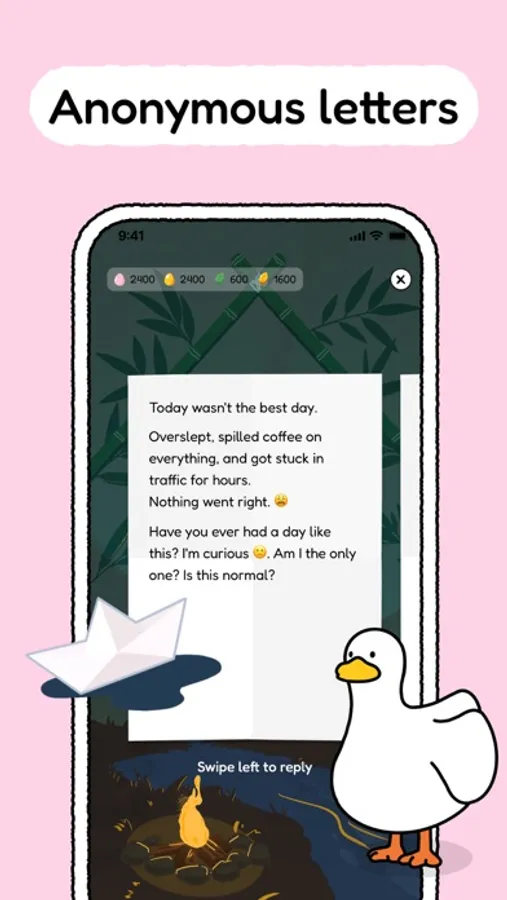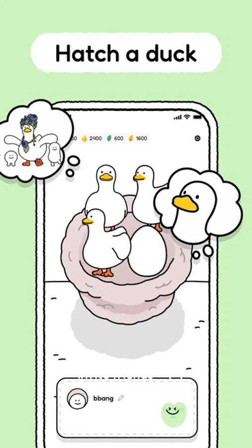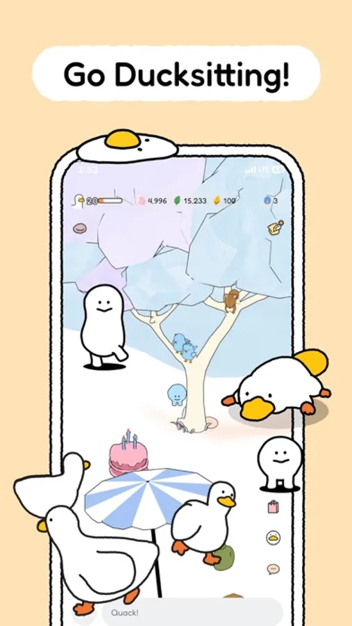 Design a calm sanctuary that mirrors your journey. Decorate with flowers and cozy decos, dress your Duck in cute outfits, and invite friendly animal companions.