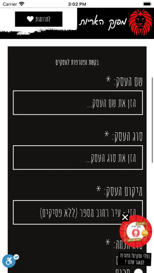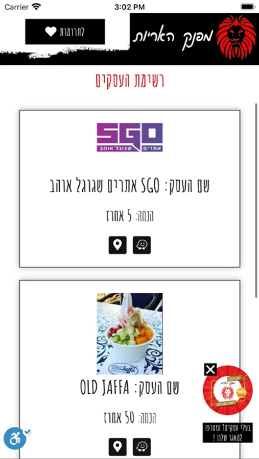 אפליקציית מפנק האריות מפזרת אהבת חינם לחיילים ומאפשרת לכל בית עסק להציג את עצמו במאגר העסקים ולספק הנחות ומבצעים בלעדיים לחיילים, בנוסף כל חייל יכול לקבל מסלול ישיר לבית העסק המבוקש.