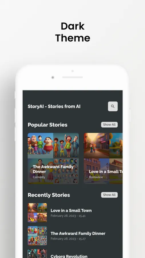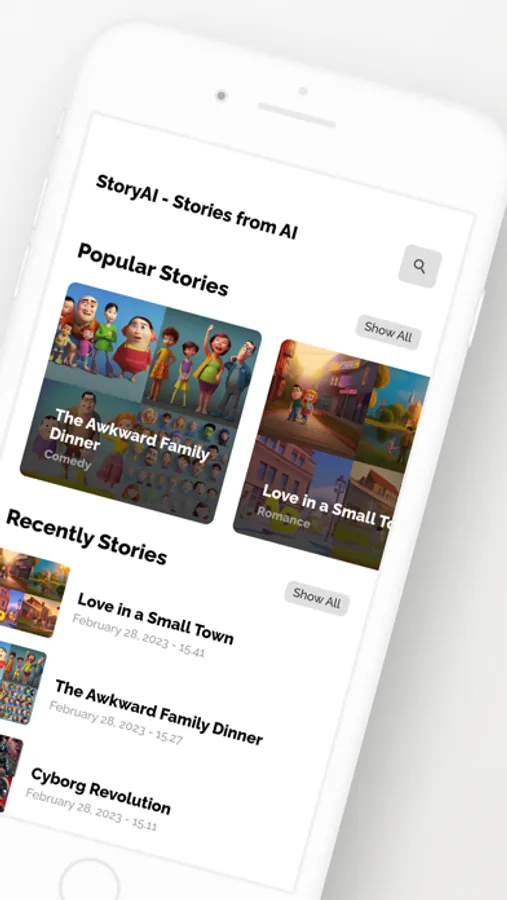 Discover different stories created by artificial intelligence now. The StoryAI application allows you to easily access many stories in 8 different categories.