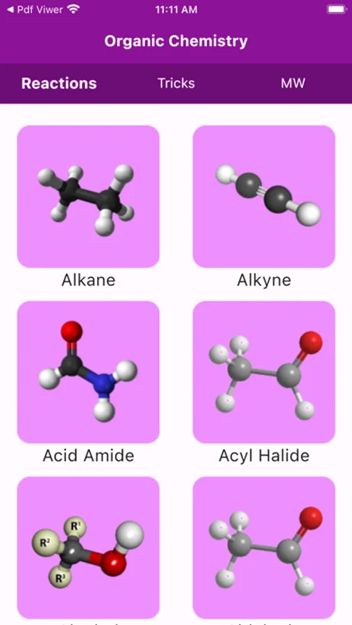 This App also contains more than 70 Organic Chemistry Reactions in different categories as listed below.