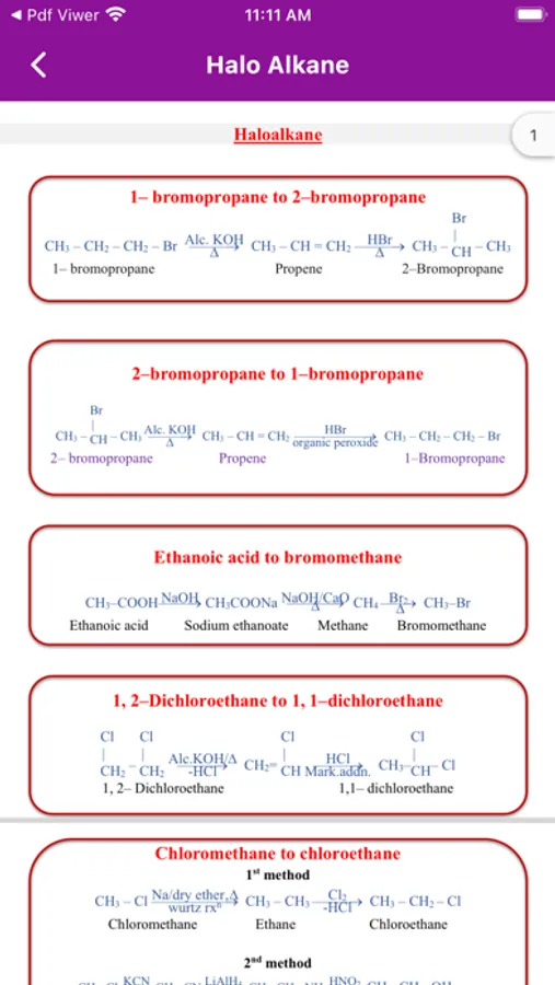 Reactants, Products and Reagents for every reaction are shown clearly with different Text Colors so that anyone can easily understand and remember the reactions.
