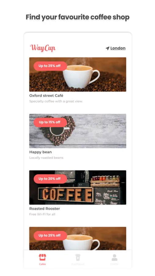 Discover your favorite coffee shops and unlock exclusive perks with Waycup, the ultimate loyalty platform for coffee enthusiasts.