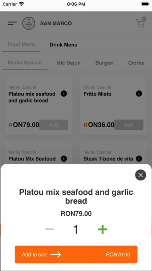 Comandă mâncare online .Formular pentru comandă de mâncare de la restaurantul San Marco Sighisoara.