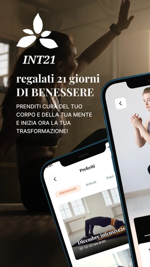 Trasformando il tuo stile di vita grazie all’accesso alla nostra app di salute e benessere, ad allenamenti quotidiani live, salvati e registrati, a diversa intensità e molto altro!