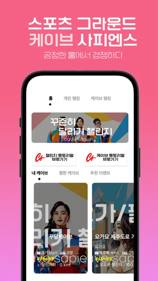 cave sapiens는 챌린지와 이벤트를 통해 삶에 건강한 루틴을 제시합니다.